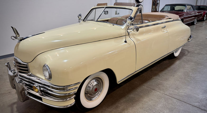 The result is a highly presentable and mechanically sorted example of Packard’s premium postwar convertible—one that combines attractive colors, strong road manners thanks to modern radials, and the peace of mind that comes from a long list of recently completed, documented repairs. It stands as a wonderful representation of Packard craftsmanship and a ready companion for touring, casual shows, or simply enjoying a classic open-air motoring experience.